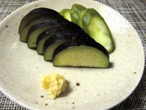 「水茄子」はそのままが一番、美味しい。たまに少~しだけ醤油を垂らすのも良いです。この「キッコーナン醬油」で。良く知られている「キッコーマン醤油」とは別物。この醤油、僕は知りませんでした。これ秋田の醤油メーカーだそうです。