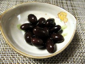 女将さんから頂いた「黒豆」。昔懐かしい家庭の味は単身赴任者や出張族にはたまらないでしょう。
