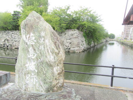 「徳島城」は市の中心部に位置する「JR徳島駅」の北側、ちょうど線路の向こうににあります。標高61メートルの城山に築かれた山城と平城からなる連郭式の平山城。