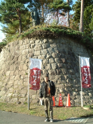 謙信公銅像の下でもう一枚、撮ってもらいました。