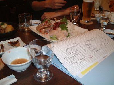 今日は次のディスプレイ・ウォール工事の打ち合わせも兼ねて飲みに来ました。