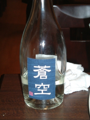 じゃ~ん。京都伏見の〈蒼空〉です。オーナー仲尾さんが苦労して用意してくれてました。この地酒、実はこっちでは中々、手に入らない代物です。僕の中では一番の地酒です。