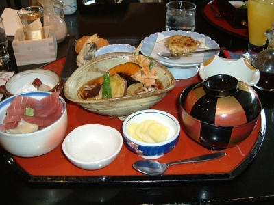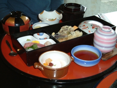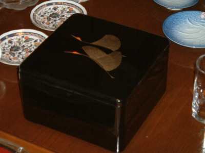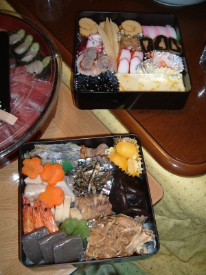 露天風呂で雪景色かなと期待しましたが30分程で止みました。食事後、温泉に2時間半程つかりました。残念ながら写真は撮っていません。なにせ普段の事を忘れてゆっくり入っていたかったものですから。この後、最後の目的「おせち料理」をいただいて帰路につきました。