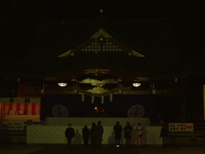 「拝殿」です。まだ新年明けていませんがお参りしていらっしゃる方もいるようです。
