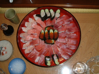 「にぎり寿司」。毎年、僕がにぎります。なかなかでしょ。