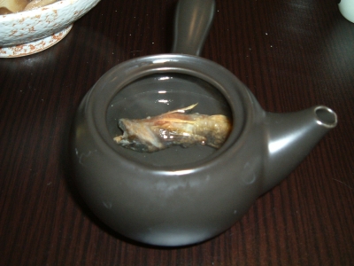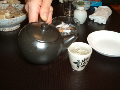 そしてこれが今回行った時に偶然あった「かじか酒」。「岩手産天然かじか」が入った時だけ出すお酒だそうです。「かじか」は清流にしかいない淡水魚で滅多に手に入らないそうです。これを出汁に熱燗で飲むそうです。では早速…。