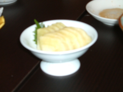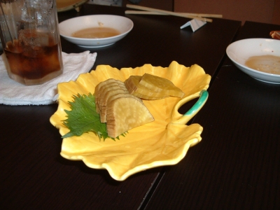サービスで頂いた「生漬け」。秋田ご出身のマスターいわく「いぶりがっこ」より好みだそうです。僕は「いぶりがっこ」かな。僕の家内はこっちだそうです。
