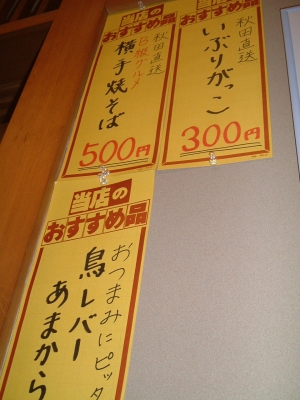 黄色いお品書きが秋田料理&お奨め料理だそうです。今回は去年の暮れに来た時より秋田料理の数が少ない気が…。まあいいか。それでは去年、食させてもらった秋田の品々ご覧下さい。