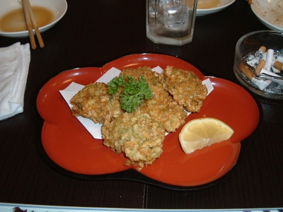 飲んだ感想は少し生臭いけど美味しい。くせになる味かもしれません。そして体が温まる。1合800円ですが5合までは「かじか」1匹で出汁が取れるそうです。2合目からは500円。都合3合飲みました。2合目が程よく生臭さもとれて一番美味しいかも。この酒で今回頂いた肴は…。