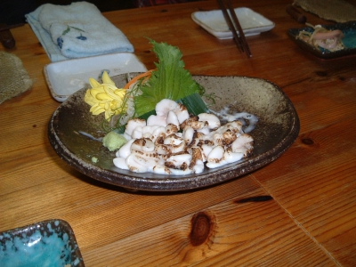 これも山形の地酒「雅山流」。これは魚に良く合う地酒です。さっそく「あじのなめろう」と「いかわた刺身」を頼みました。この「いかわた刺身」は絶品です!「なめろう」も美味い!ちなみにこの頃には良い気分になってまして上記2肴の写真は撮り忘れました。ごめんなさい。