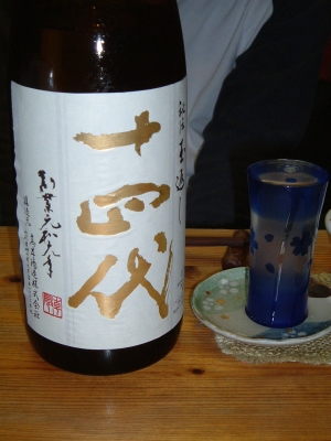 今回は僕と哲ちゃんと弟と取引先の飯田さんの4人で来ました。僕と哲ちゃんが昨年、地酒をたくさん飲ませてくれる居酒屋を探していた時「ととや」さんを知りました。一番はじめに来た時の店構えの第一印象は「えっ!ここ居酒屋!まして地酒を飲ませる店だよね。」店構えはどちらかと言えば喫茶店風。実は内装もそんな感じです。ただし味は一品でした。「ととや」と言うくらいですから魚が美味しい。少し創作料理風な所もあって女性にもGoodなんじゃないですか。ちなみに僕の家内もすぐにお気に入り居酒屋の1つに加えてました。そして地酒です。まずはここで出会った「蒼空」を頼みましょう!