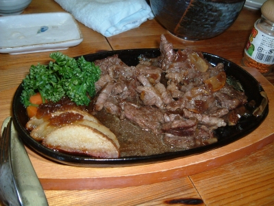 弟が頼んだ「ビーフステーキ シャリアピンソース」。う~ん?肉はステーキ屋で食うかな。