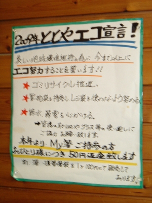 「ととや」さんは右写真の様にエコにも力を入れてます。特にMy箸持参すれば50円返金してくれます。もちろん僕も…