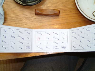 銘柄を飲めばスタンプを捺してくれます。そしてページ事にスタンプが埋まればお好きなのを一杯サービスしてくれるそうです。そして…