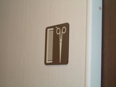 お年寄りの事を考えて部屋の表示は全てサインになっています。ここは整髪ルームです。
