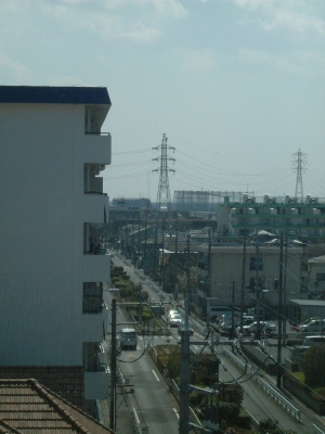 5階から南側を見た風景です。中央の鉄塔の横にボンヤリと東京スカイツリーが見えます。冬場であればハッキリ見えると思います。
