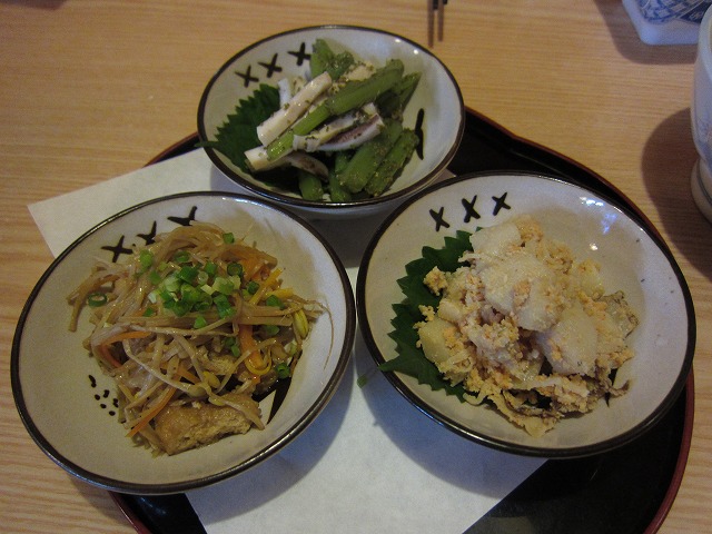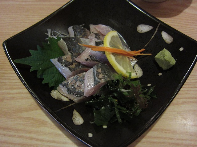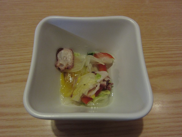 お通しは酢の物。「蛸のマリネ」風な感じです。美味しいです。それでは何から頂きましょうか?