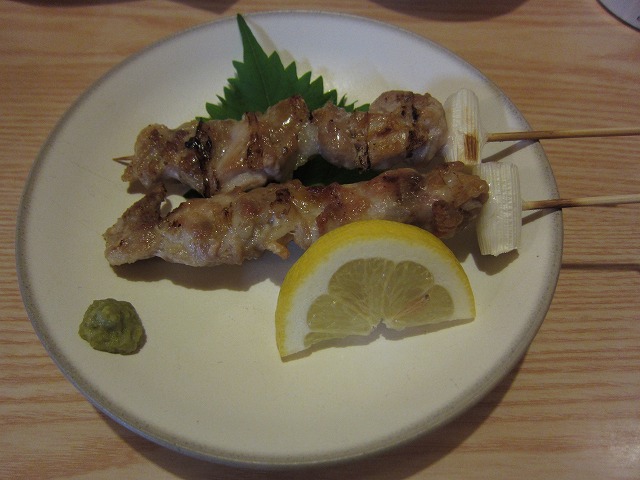 「津軽地鶏天然塩串焼」。青森シャモロックです。美味い!!ビールに良く合います!