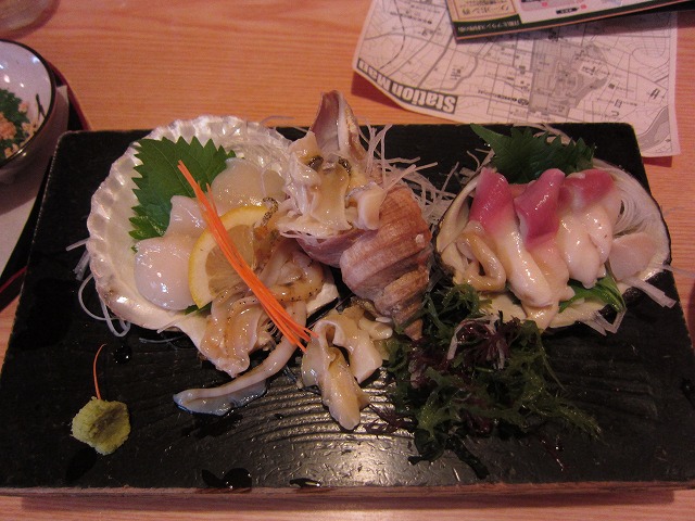「貝づくし三種盛り」。やはり帆立が一番ですね!青森は。