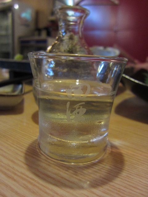 ここらでお酒にします。「田酒特別純米酒」。関東でも有名なお酒です。地酒はその土地で飲むのが一番。僕の好きな銘柄です。