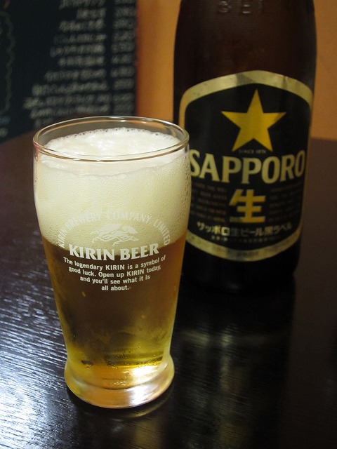 このお店は弘前東栄ホテル内にあり、店内は落ち着いた感じで居酒屋兼和食レストラン的な佇まい。席もほぼ満席で小さなお子さん連れの若いご夫婦もいらっしゃいました。まずは「黒ラベル」で乾杯です!