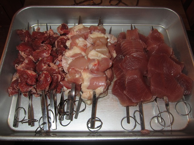 まずは下処理です。左から「カシラ&ハラミ」。「鳥もも」。そして「鮪の赤身」です。