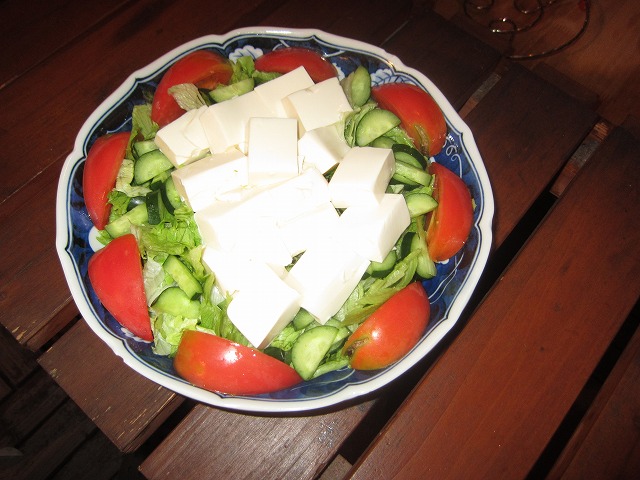 「豆腐サラダ」です。ドレッシングは醤油とゴマ油等で作りました!