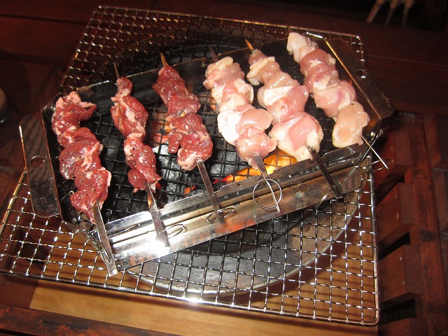 金串だと中まで熱が伝わるのでもつ焼き系には最適です。但し食べる時、熱いので手等、火傷しないよう注意が必要です。