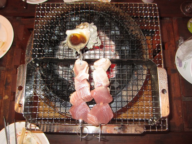 「鮪」も軽く炙ります。お酒には魚貝が良く合います。秋の夜長、月を満喫しながらしみじみ嗜みました。