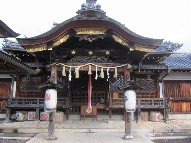 境内の柱や賽銭箱等、いたる所に「豊臣」家の家紋「五七の桐」が施されています。毎年10月には「豊公まつり」が開催され「秀吉」公にあやかって商売繁盛や出世を願う人で賑わうそうです。