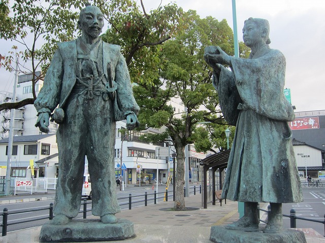 「観音寺」の「三献の茶」のエピソードはご存じですか?鷹狩りで喉の渇いた「秀吉」公に「佐吉」少年、一杯目は大きな茶碗にぬるめのお茶をたっぷりと、二杯目は少し熱いお茶を茶碗に半分だけ、三杯目は熱いお茶を小さな茶碗に入れて差し出したという「三成」公の心配りの良さを示したエピソードです。これにより「秀吉」公は「佐吉」少年をいたく気に入り側に置いたと言われています。冒頭の写真はその様子を現したもので「出逢いの像」と言います。