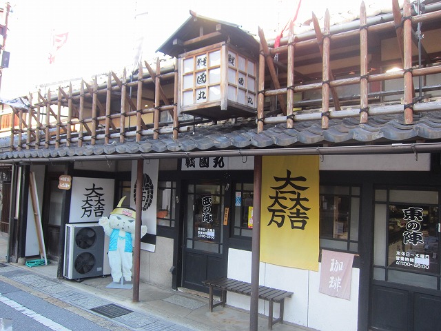 その商店街に銭湯を改修した戦国マニア御用達、「ひこね町の駅戦國丸」なる戦国グッズショップがあります。店構えから見ても「三成」公専門!なのが分かるかと思います。(もちろん他の武将のグッズも沢山、揃えてあります)写真左のキャラクターは「いしだみつにゃん」。もちろん「三成」公です!学生時代の歴史の印象は確かに「三成」公は負のイメージでしたがこの近江の石田町や佐和山城下に来てみると「三成」公は主君「秀吉」公に生涯、従じた「義」の武将。現在はそこに注目されているのが解ります。又、「秀吉」公もそんな「三成」公を可愛く思ったに違いないでしょう。素晴らしい主従関係を感じる事のできる旅でした。