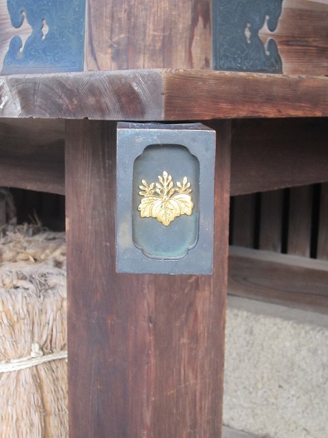 境内の柱や賽銭箱等、いたる所に「豊臣」家の家紋「五七の桐」が施されています。毎年10月には「豊公まつり」が開催され「秀吉」公にあやかって商売繁盛や出世を願う人で賑わうそうです。