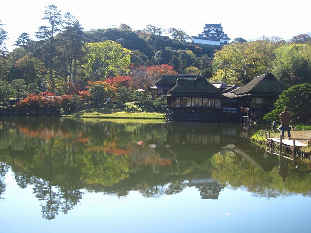 さて「彦根城」に戻り城内にある大名庭園「玄宮園」にお邪魔させて頂きました。ここは4代「直興」公が近江八景を模して造営しました。水面に映る「天守」や紅葉・緑が見事でした。