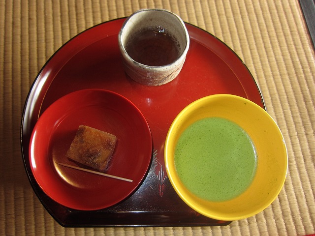 中で「お抹茶」もいただきました「信長」公はよく「お茶」を嗜んだとの事。この場所でいただく「お茶」は格別な物があります。又、写真の甘味物は「柿の寒天」とても美味しかったです。