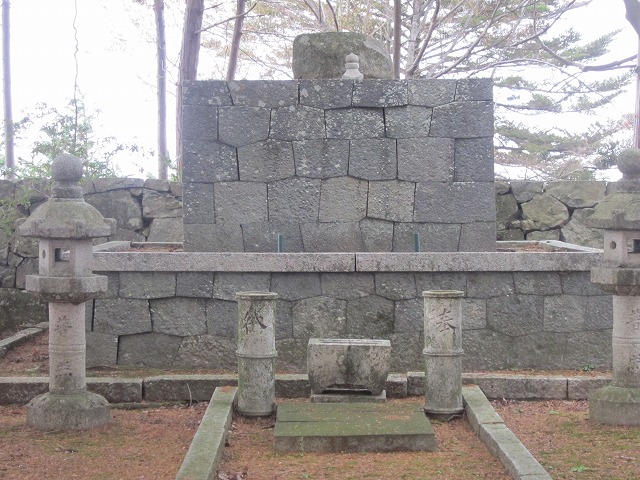 さて「天主」のあった「主郭内」にはいりました。この「主郭内」一帯が火災の範囲と推定されています。写真は「信長公本廟」羽柴秀吉」公が火災のあった翌年ここに「信長」公の太刀、烏帽子、直垂等の遺品を埋葬して本廟としたそうです。
