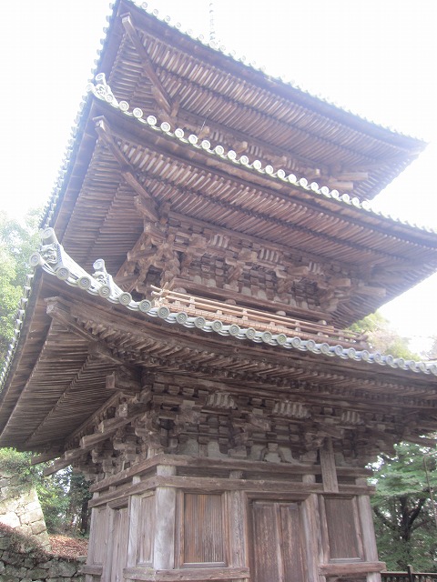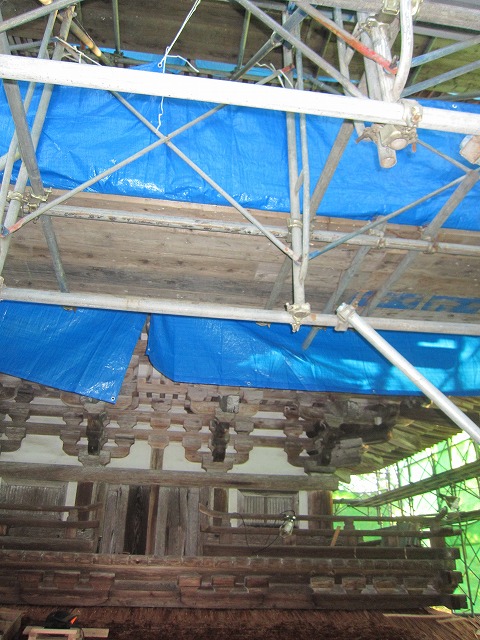 こちらも火難を免れ現存している「三重塔」訪ねた時はちょうど屋根の葺き替え工事中でした。シートを被っていて姿を遠目から見る事はできませんが足場に上がって葺き替え工事の様子を見る事は出来ます。