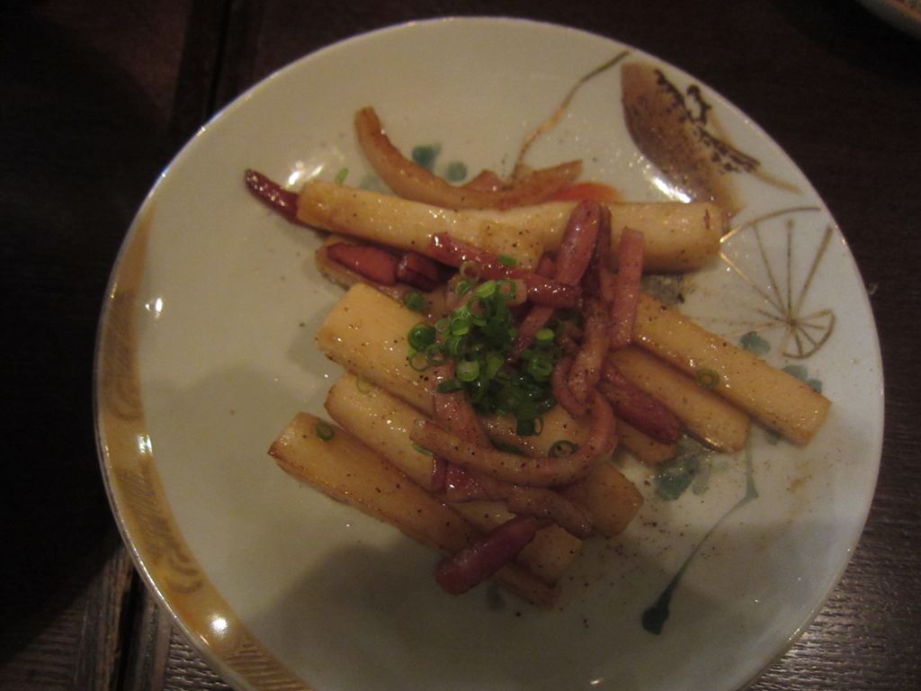 連れがオーダーした「長イモとベーコンの黒コショウ炒め」