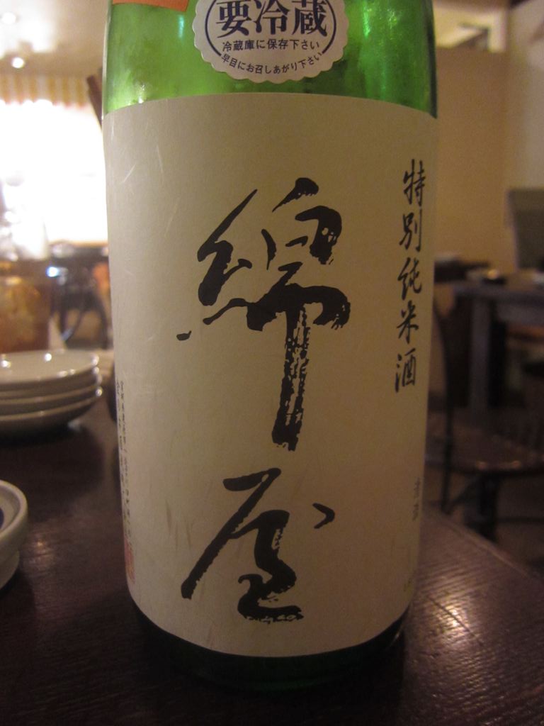 ビールも飲みほしたので宮城の地酒いきますか。頼んだのは「錦屋(わたや)特別純米酒」をもっきりで。もっきりとは一合をなみなみと注ぐ事だそうです。