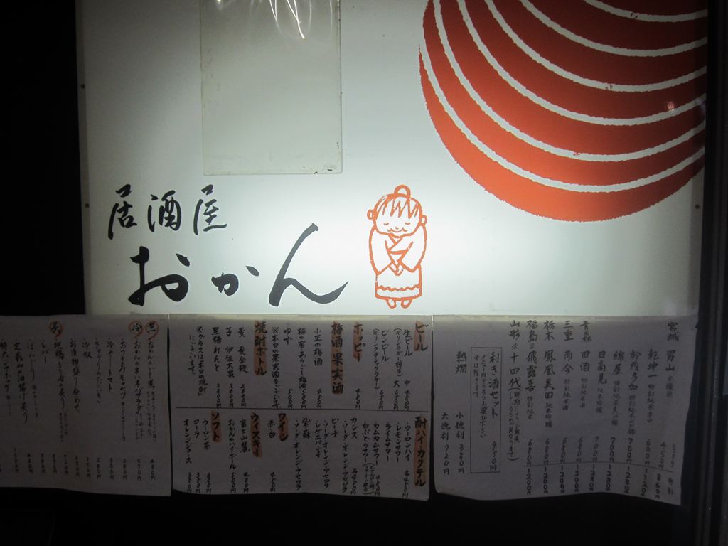 先日、仙台に行く機会があったので夜は当然のように居酒屋巡りしてきました。ネットで幾つかピックアップした中で今回は「居酒屋 おかん」に行ってみました。