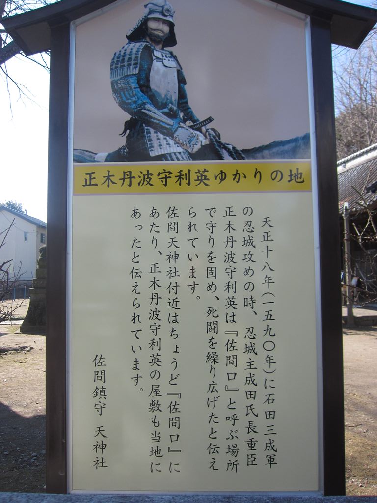 そしてこの「佐間口」「のぼうの城」にも登場する「正木丹波守利英(まさきたんばのかみ としひで)が守りを固めた場所彼はここで「豊臣軍」を向え打ったとされています。
