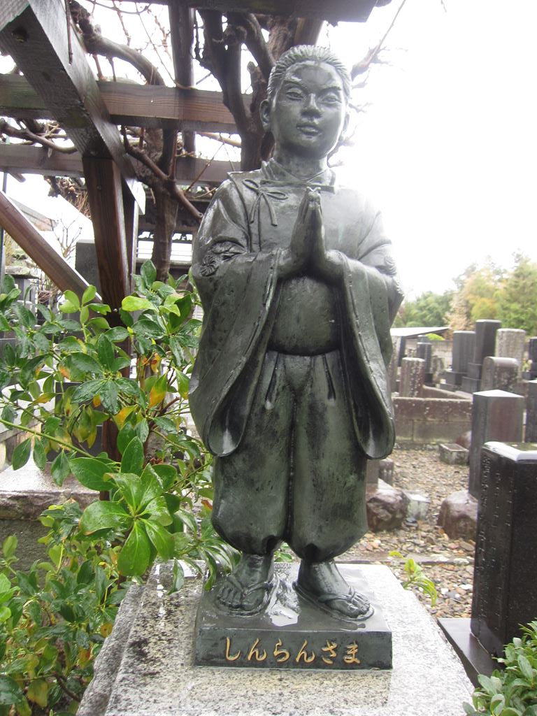 妙勝寺の「しんらんさま」の像。少年時代の親鸞だと思います。