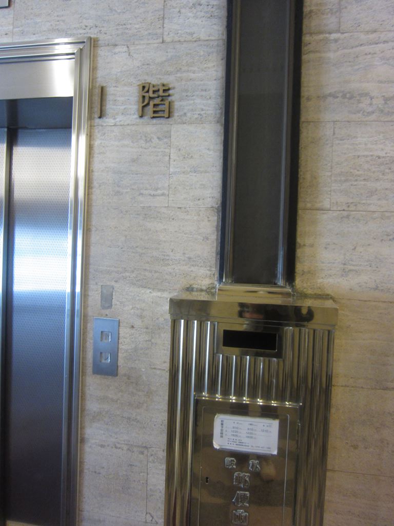 以前はホテルでもあった「電気ビルデイング」。各階に真鍮製のポストが設置されていて投函する事ができます。
