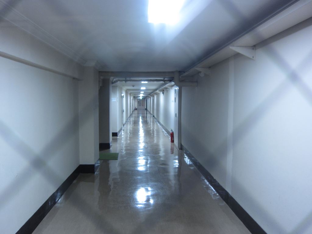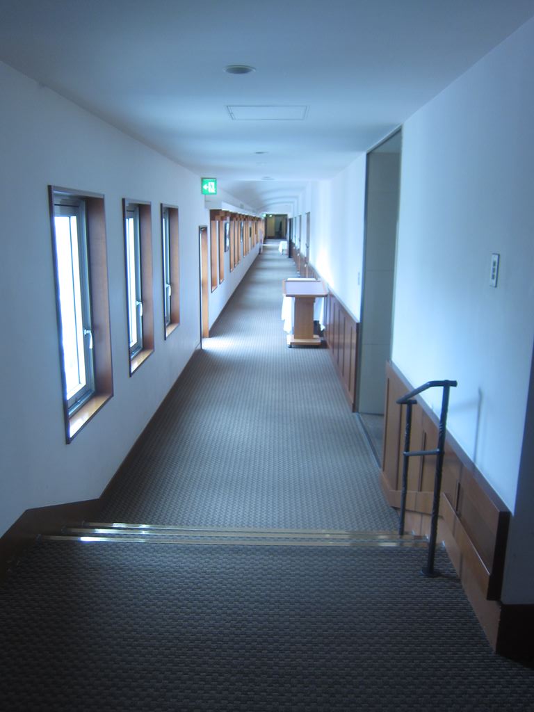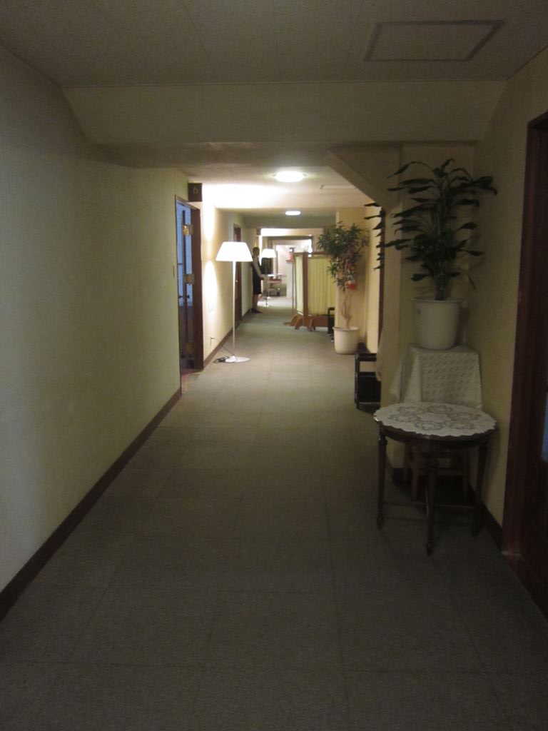 4階「レストラン」のある廊下。天井の低さが時代を感じさせてくれます。