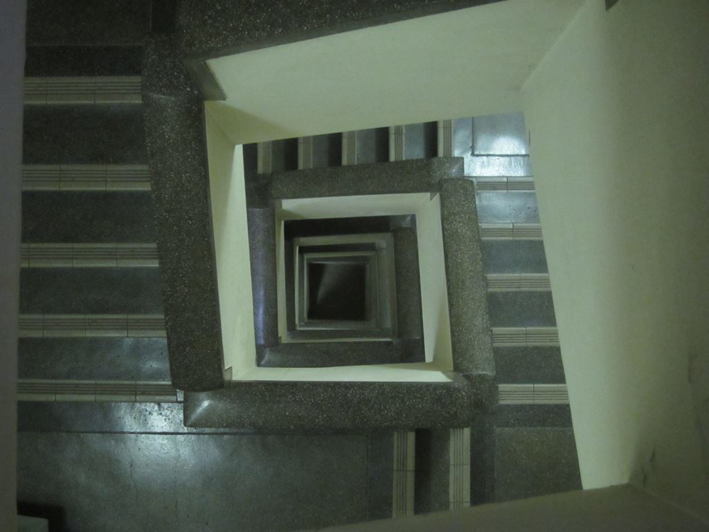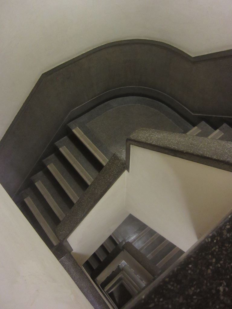 駆け下りるとコツコツと音のしそうなシネマな世界。