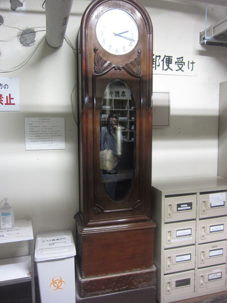 同じく地下1階にある郵便受けと振り子時計。