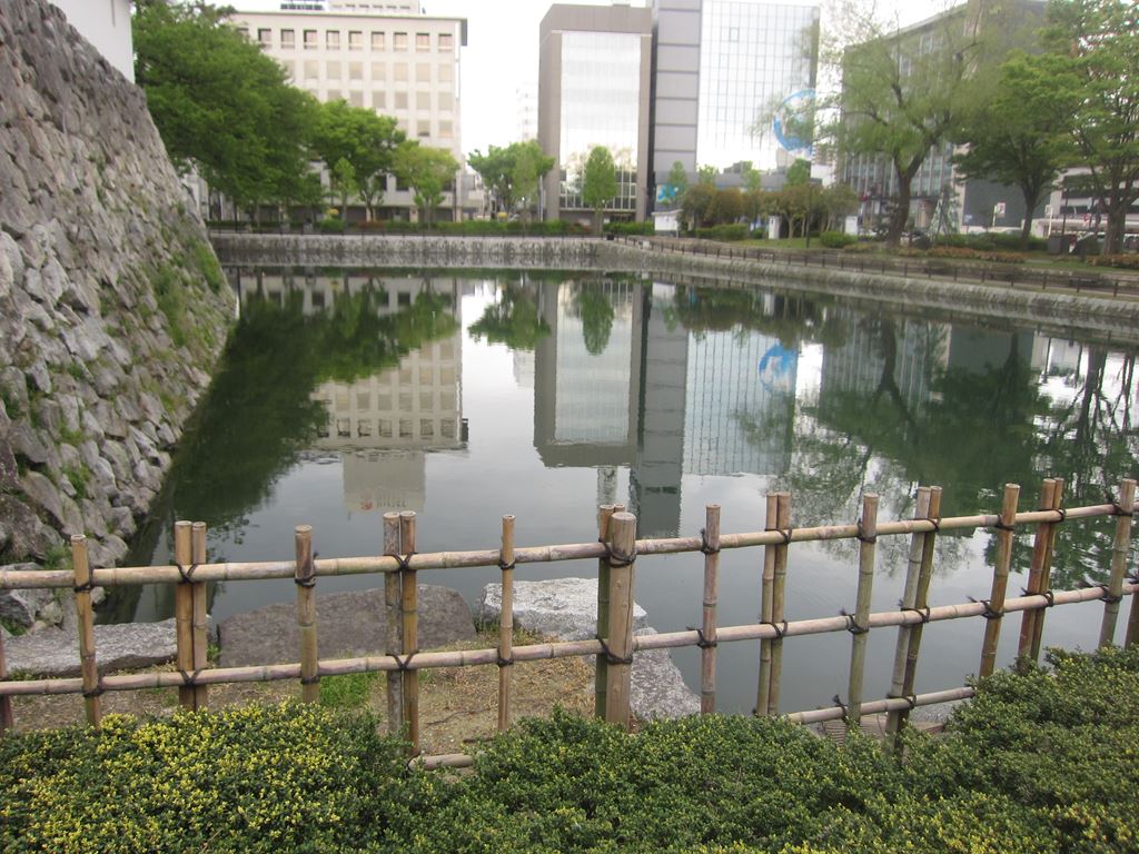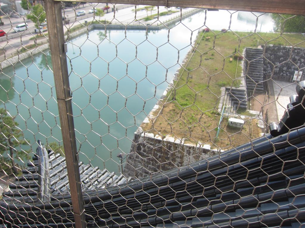 「天守」展望台より現存の「水堀」「石垣」を望む。