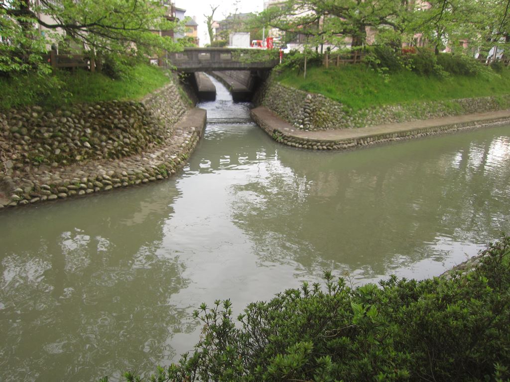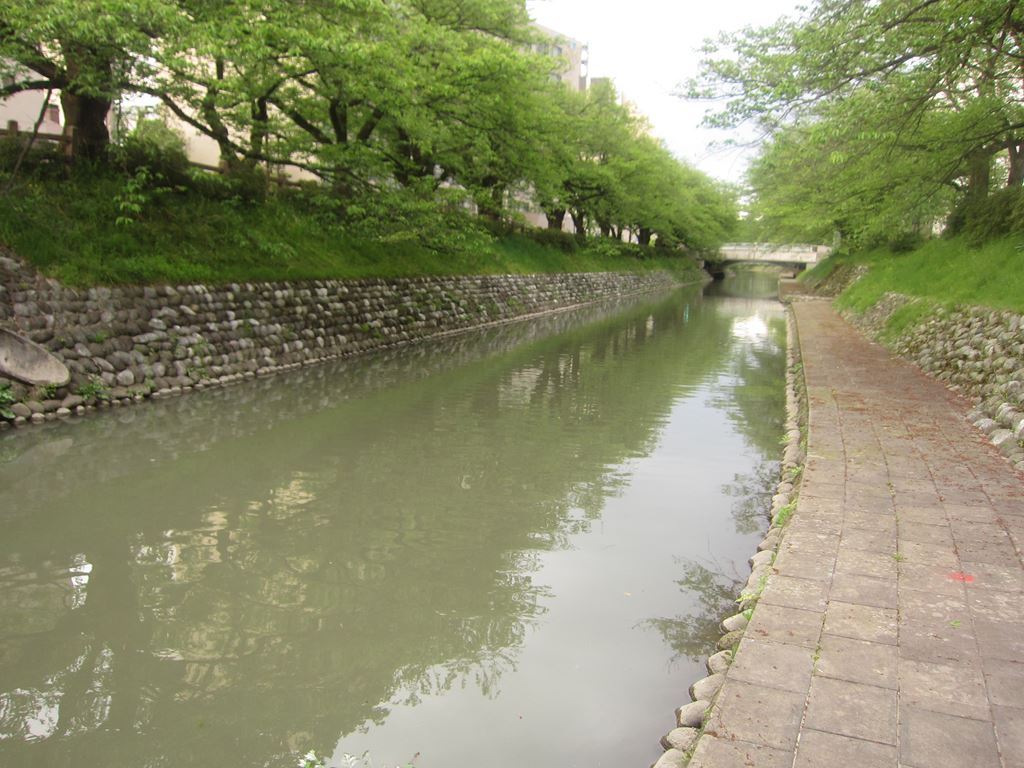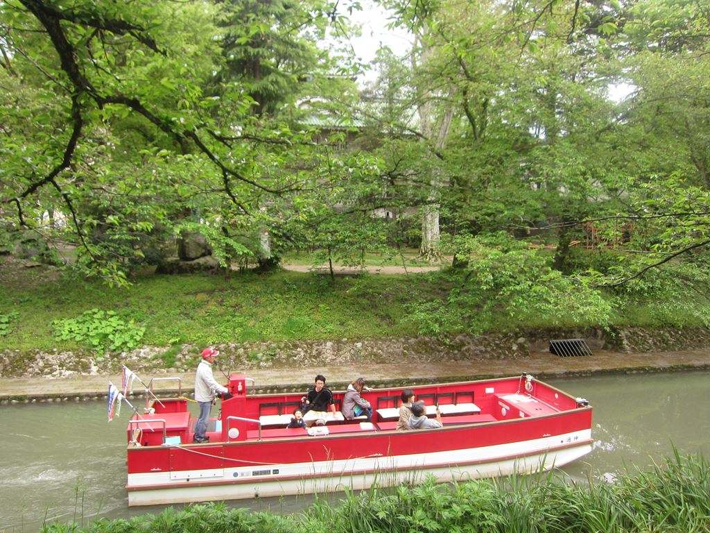 「松川遊覧船」を眺めながら「富山城」の北側「松川」沿いを西に向かって歩きます。