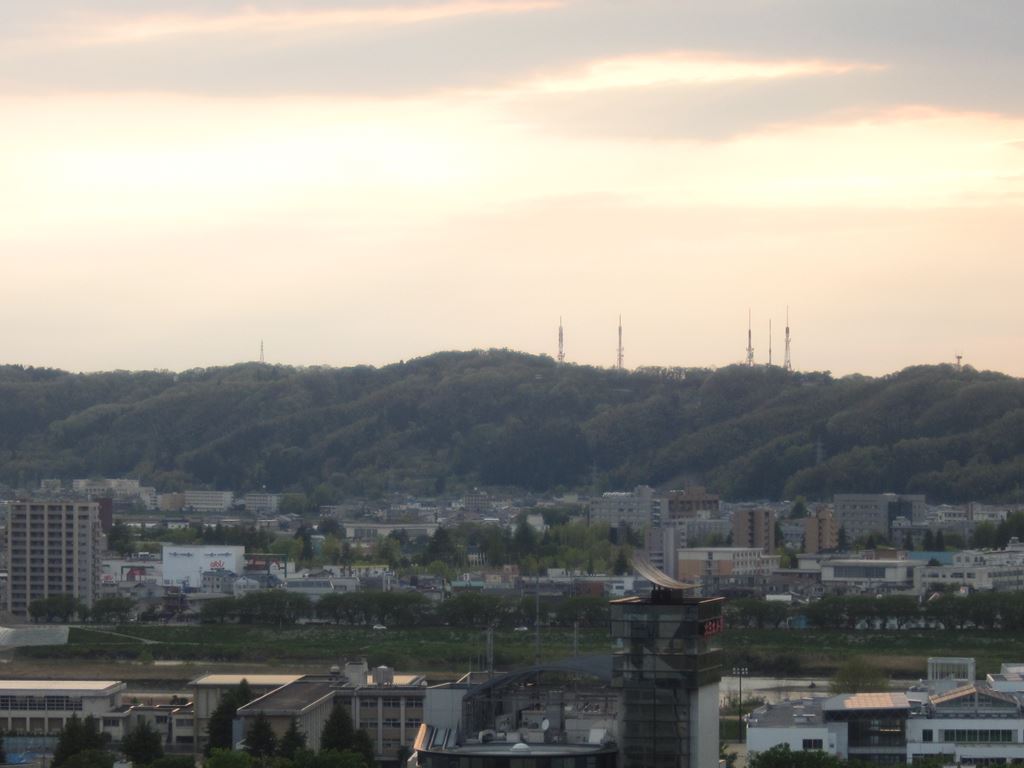 そして向こうに見える呉羽山の尾根には「白鳥城」が、かつてありました。「富山の役」「成政」公を攻める為に「秀吉」公が本陣を置いた城でもあります。