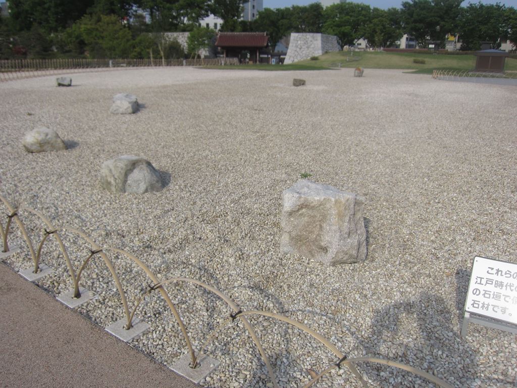 そこから「本丸」方面に目を向けると現「天守」が望めます。「石垣」「水堀」は当時のままの姿を残しています。